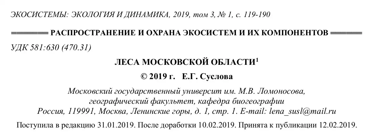 🌳 На основе статьи: Леса Московской области © 2019 Г. Е.Г. Суслова