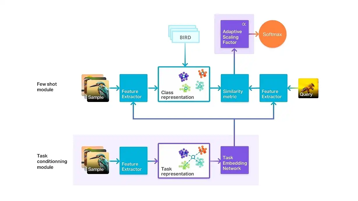 Идея: Научить модель измерять "схожесть" или "расстояние" между объектами. Если новый объект похож на известные примеры из набора поддержки, его относят к тому же классу.