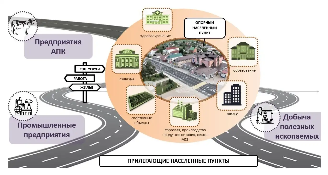 Опорный населённый пункт (ОНП) – это населённый пункт, приоритетное развитие которого способствует достижению национальных целей и обеспечению национальной безопасности России. Его ключевая функция – формирование точки роста и центра предоставления услуг для обширной прилегающей территории.