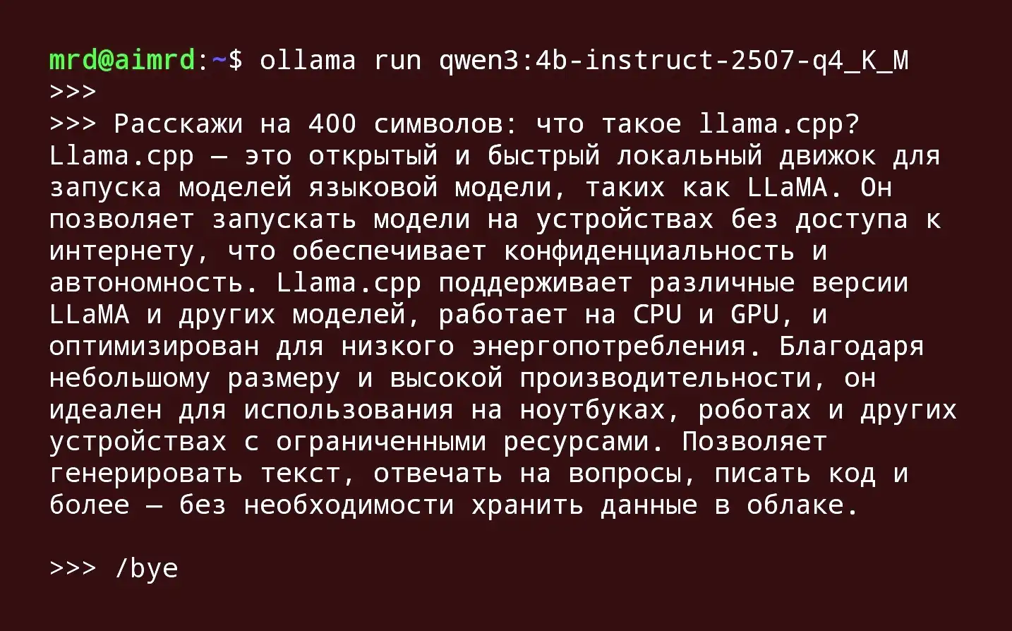 Этот проект — не просто инструмент, а изложение принципов: независимости от облачных инфраструктур, полного контроля над данными и их приватности, а также открытости и доступности передовых технологий. Благодаря работе Георгия Герганова и сотен контрибьюторов, сегодня любой человек, имеющий даже скромный ноутбук, может прикоснуться к миру больших языковых моделей и использовать их силу для своих проектов.
