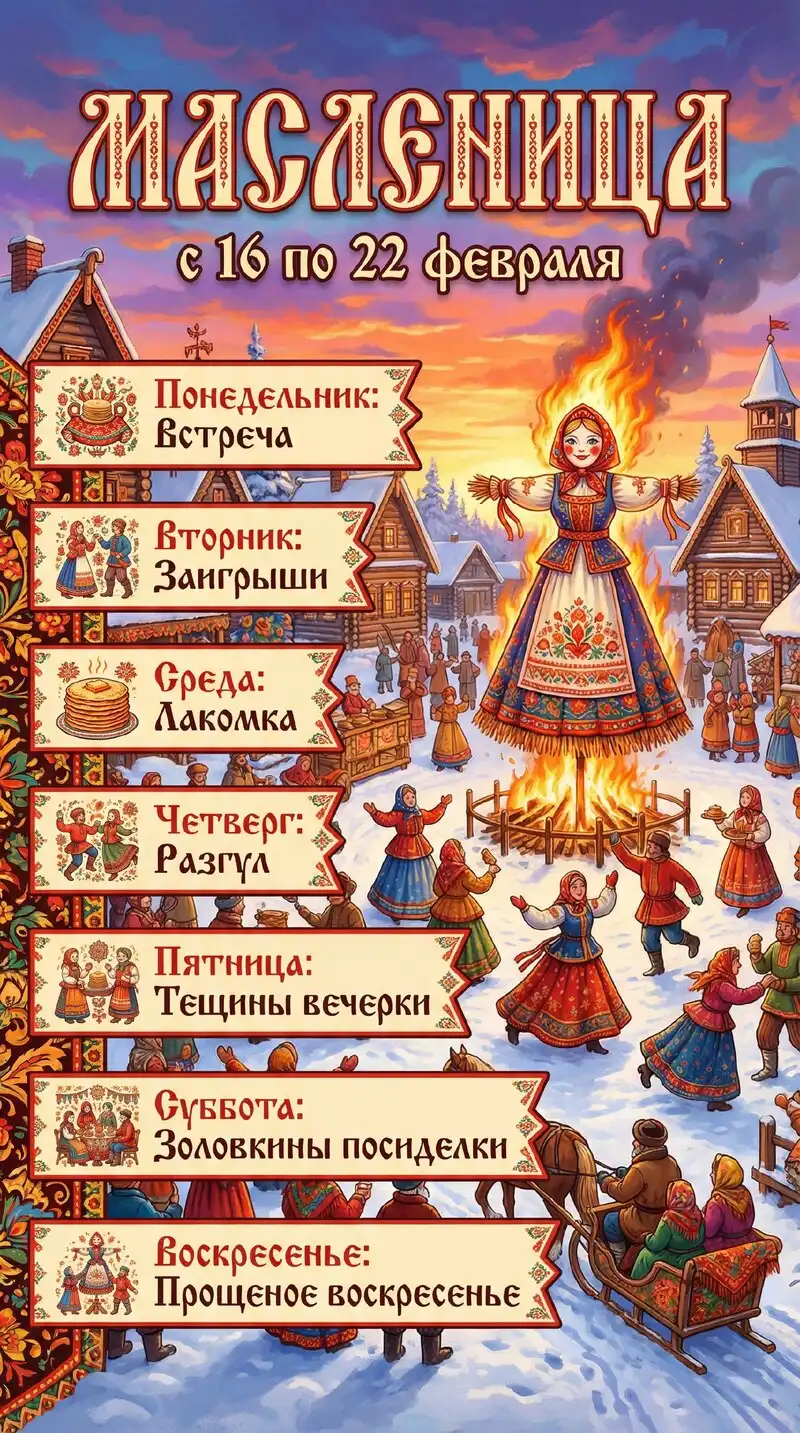 В 2026 году масленичная неделя пройдёт с 16 по 22 февраля.