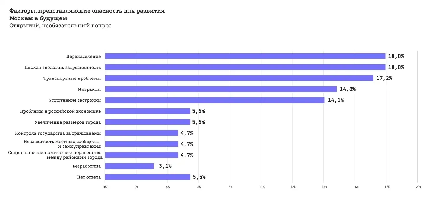 Транспорт, экология и мигранты — это три проекции растущих страданий миллионного мегаполиса. Москвичи ясно дают понять, что хотят видеть свой город комфортным, экологичным и предсказуемым.