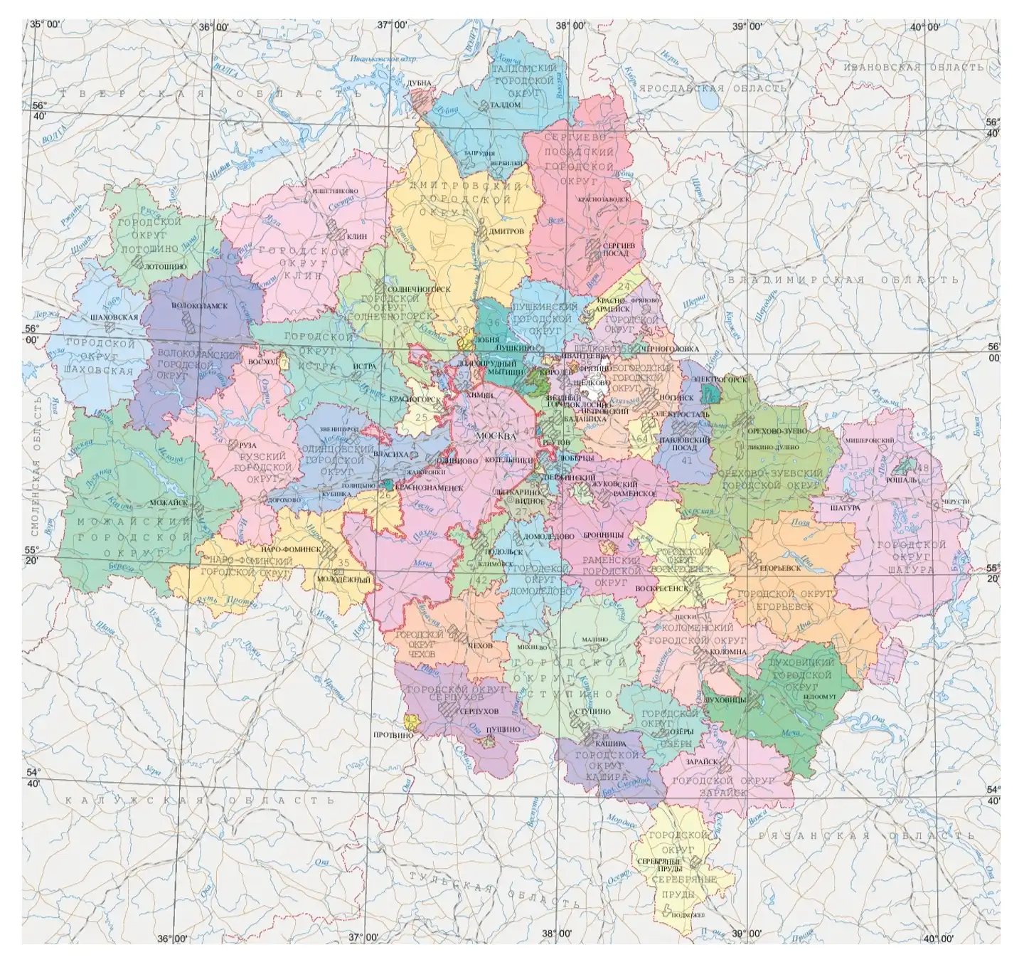 Карта административного деления Подмосковья