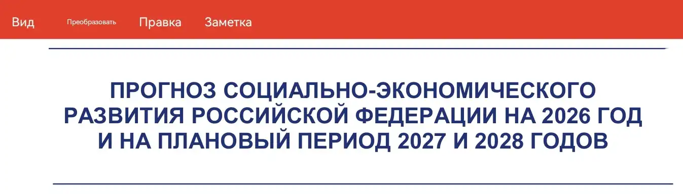 Социально-экономическое развития РФ на 2026 год и на плановый период 2027 и 2028 годов. Прогноз Минэкономразвития: инфляция вернется к цели, а экономика разгонится во второй половине трехлетки.