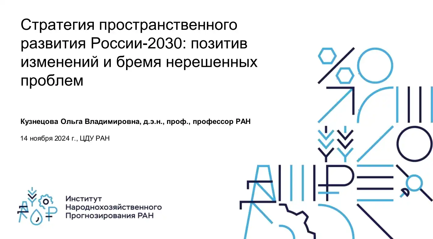 🇷🇺 Стратегия пространственного развития России-2030: позитив изменений и бремя нерешенных проблем. Кузнецова Ольга Владимировна, д.э.н., проф., профессор РАН. 14 ноября 2024 г., ЦДУ РАН. Институт Народнохозяйственного Прогнозирования РАН