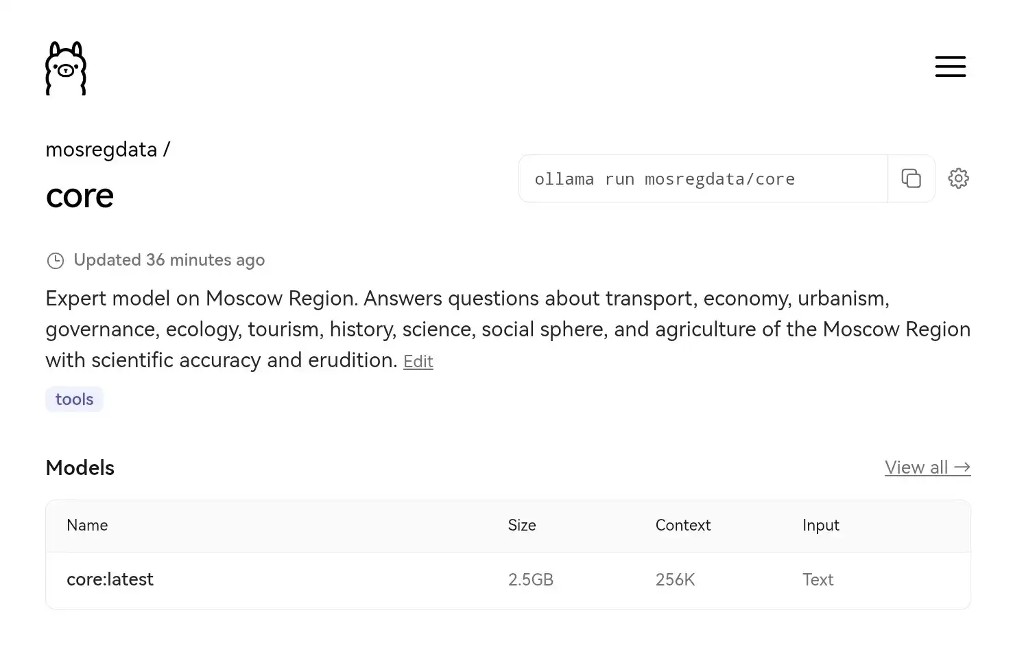 🚀 Модель: https://ollama.com/mosregdata/core