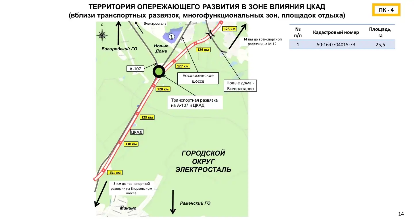 - Расстояние до ЦКАД: Непосредственное примыкание: 160 и 161 км трассы