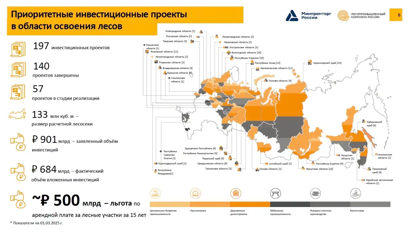 В условиях ограниченного доступа к традиционным экспортным рынкам Европы и Америки лесопромышленники вынуждены переориентироваться на внутренний спрос. Однако и здесь ситуация остаётся сложной из-за сокращения строительства, особенно в частном секторе.