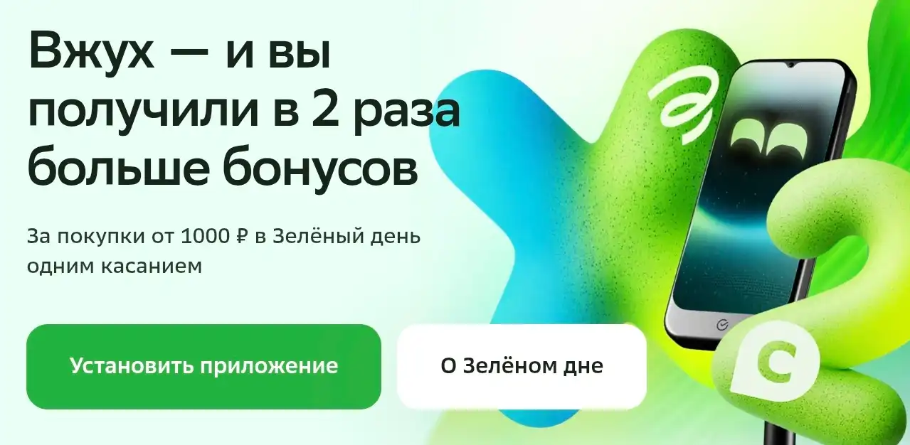 «Вжух» не вводит никаких особых условий по начислениям. Вы можете привязать любую карту Сбербанка — дебетовую или кредитную, национальной системы «Мир» или международных Visa и Mastercard. Все бонусы программы «Спасибо», кешбэк и акционные накопления (например, в «Зеленый день») работают в полном объеме, как если бы вы платили физической картой.