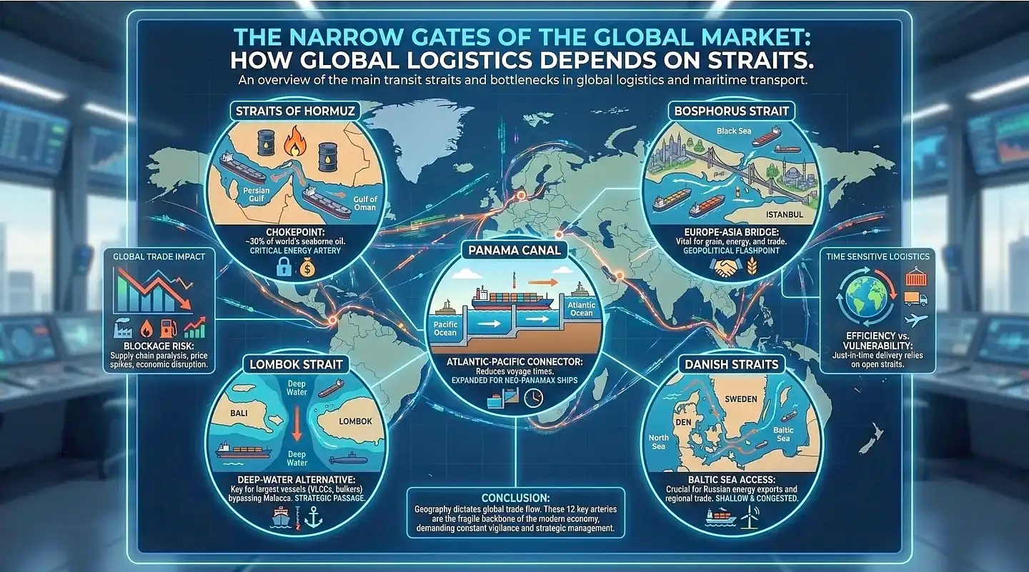 Мировая логистика — это не только порты и контейнеры. Это тонкие синие линии на карте мира. Как показал анализ, состояние проливов формирует ставки на фрахт, диктует графики поставок и влияет на геополитические альянсы.